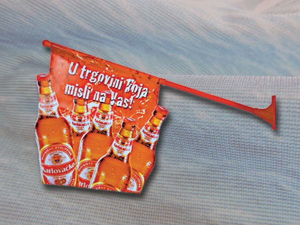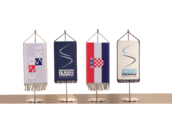 Format i oblik zastavice nudimo u različitim veličinama ovisno o zahtjevu kupaca. Nosač zastavice napravljen je od plastične mase i uz njega ide samoljepljiva traka i vijci ovisno o podlozi gdje se planira koristiti.