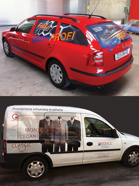 Izrađujemo naljepnice jednostrane i obostrane za staklene površine svih formata, za vozila, za zidove i ostale površine i upravo ovisno o površinama na koje dolaze odabiru se vrste folija na koje se naljepnice otiskuju.