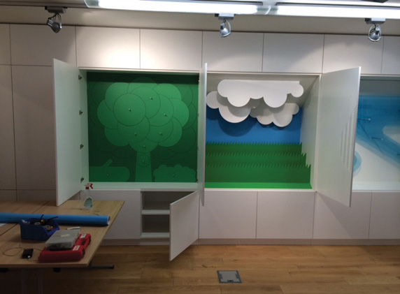 Kada neki prostor treba učiniti prepoznatljivim i urediti, nudimo našim kupcima raznovrsna rješenja za uređenje i oblikovanje takvih prezentacijskih prostora. Situacija je naravno uvijek različita: ili su to vanjski prostori za kakav događaj - event, sajmovni prostor za izlaganje, muzejske izložbe stalnih postava ili prolazne izložbe. Kod takvih prostora ponekad je potrebno malo intervenirati sa kakvim detaljem kao što su naljepnice, roll-up konstrukcije, otisnuta platna kao zavjese ili pregradni banneri. A ponekad je potrebno urediti cijeli prostor – pa otiskujemo na platno, papir, tapete, cerade, samoljepljive folije i sl.