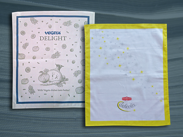 Privlačnim dizajnom i svakodnevnom upotrebom kuhinjska krpa povoljan je proizvod za vašu reklamu.