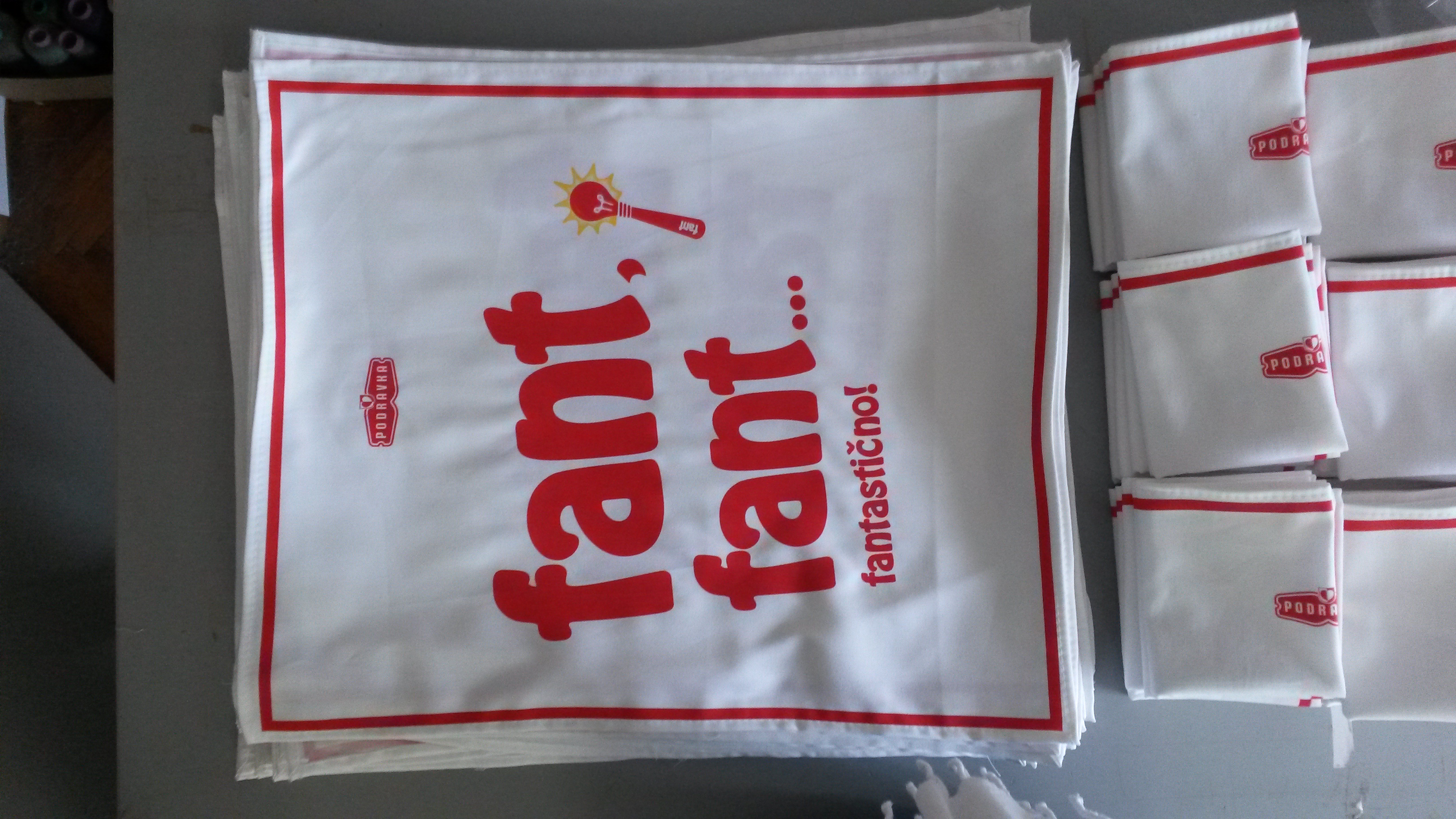 Kuhinjska krpa je proizvod koji se svakodnevno koristi u kuhinji. Zbog toga čest je proizvod u našoj proizvodnji. Uglavnom istih formata i s mogučnošću da na relativno malom komadu platna možete imati vlastitu reklamu – kupci se često odlučuju za proizvode ovakvog tipa.